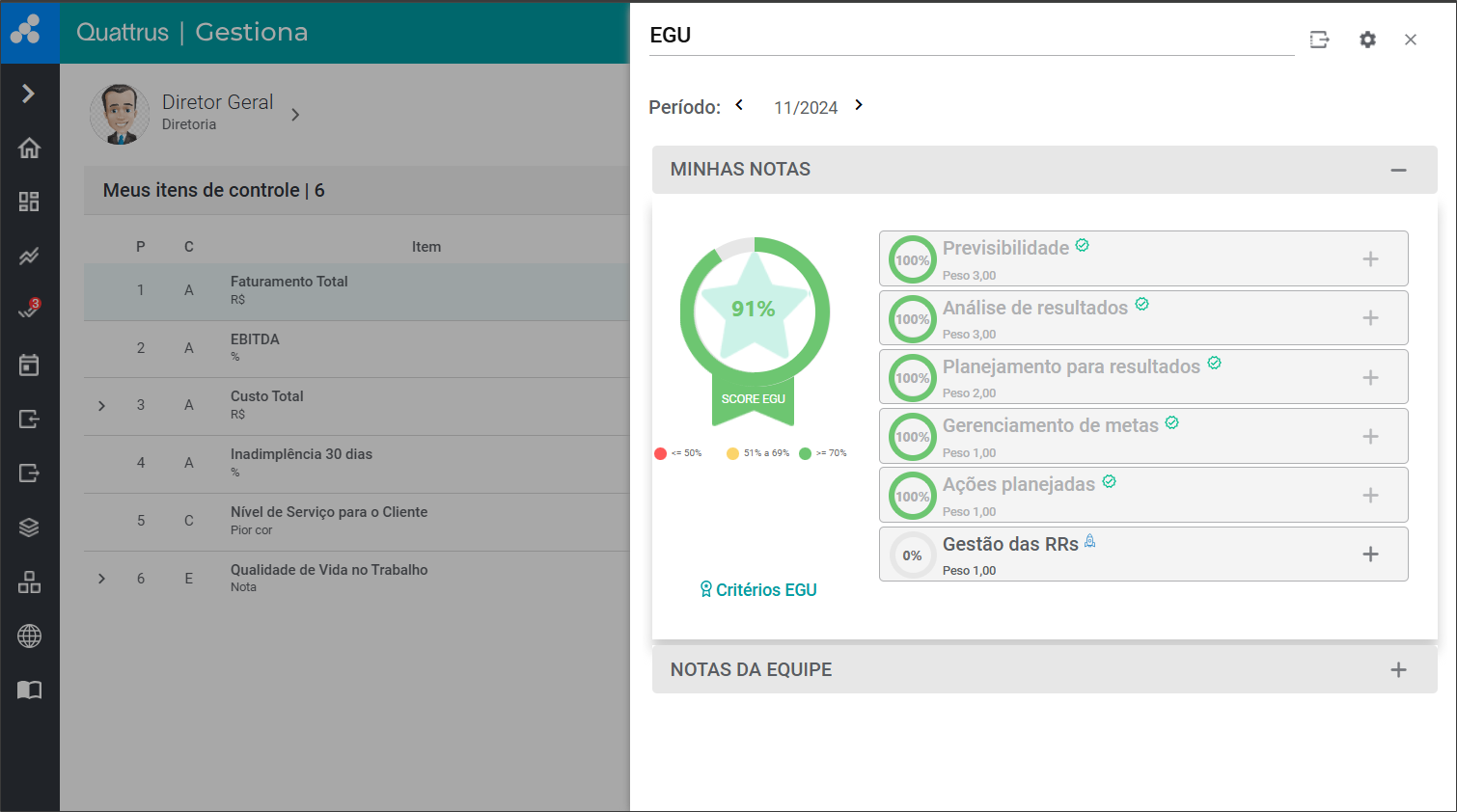 Em Notas da Equipe, você poderá acompanhar como está o desempenho da sua equipe em cada um dos critérios da EGU.