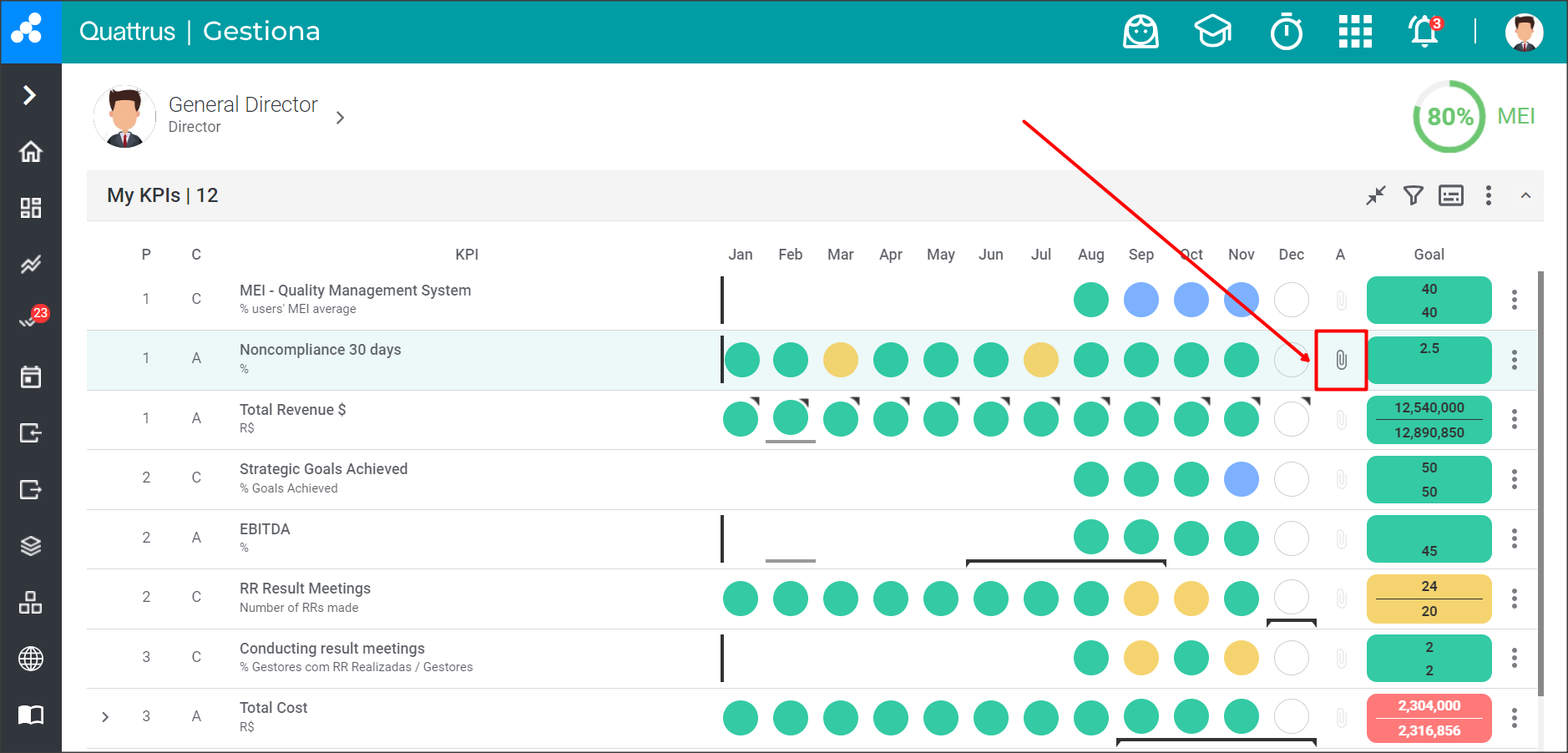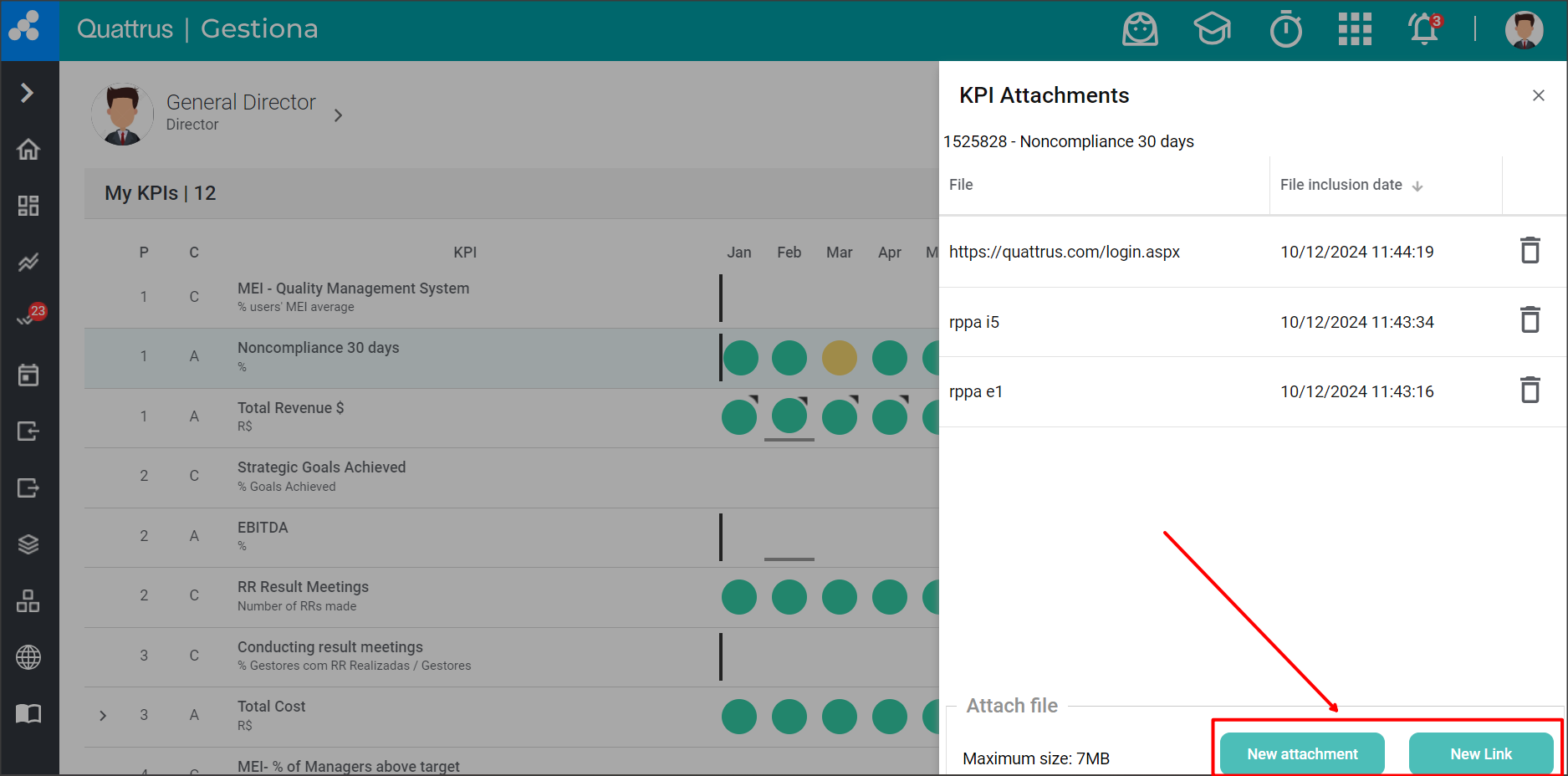 You can attach files to your KPIs, making it easier to access reports or presentations, for example.