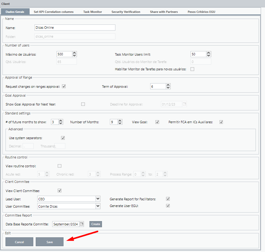 To configure this functionality, click on the client’s name in the side menu to access the Client Registration screen: