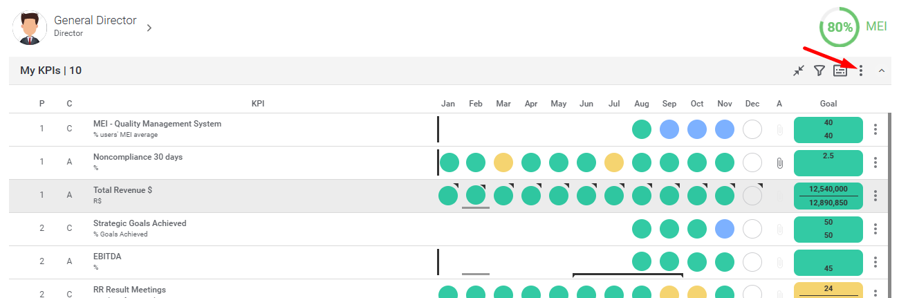To create a new indicator is very simple, on the main Dashboard, just click on the three dots icon to open the menu. Then click on Add Control Items.