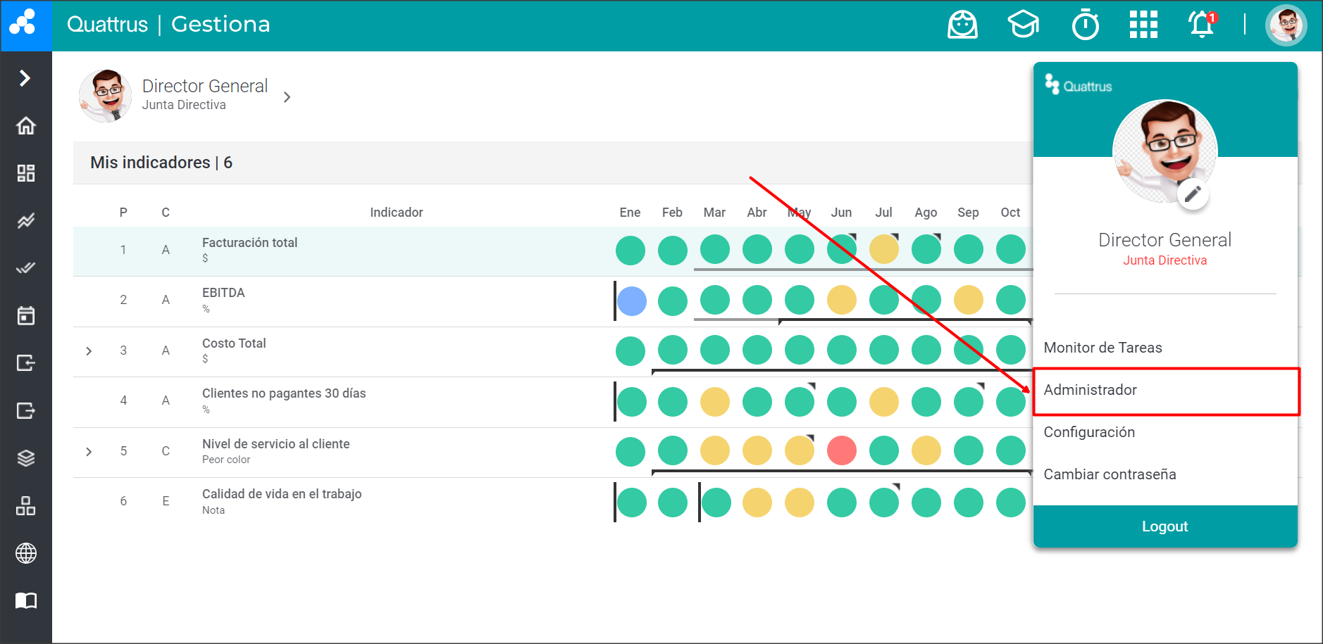 Haz clic en la opción “Administrador” dentro del menú que aparece a continuación y serás dirigido al entorno del Panel Administrativo: