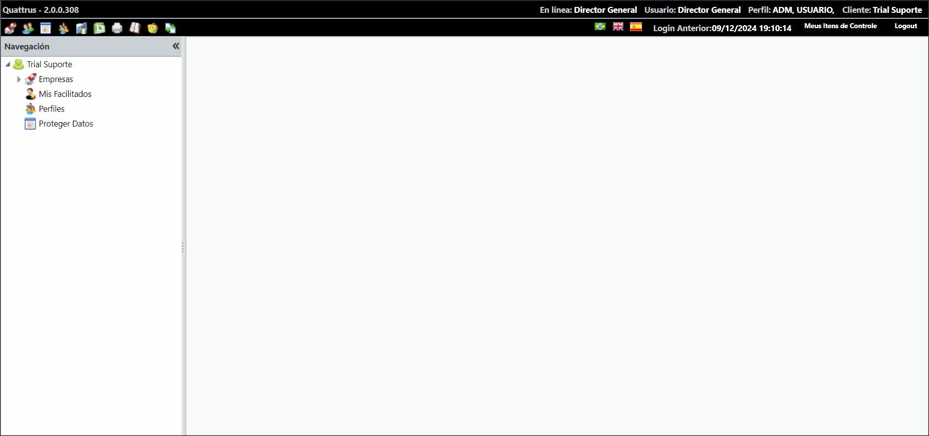 Y estará disponible el entorno del Administrador, para poder crear, editar, importar o exportar información de la empresa, en caso de tener los permisos necesarios: