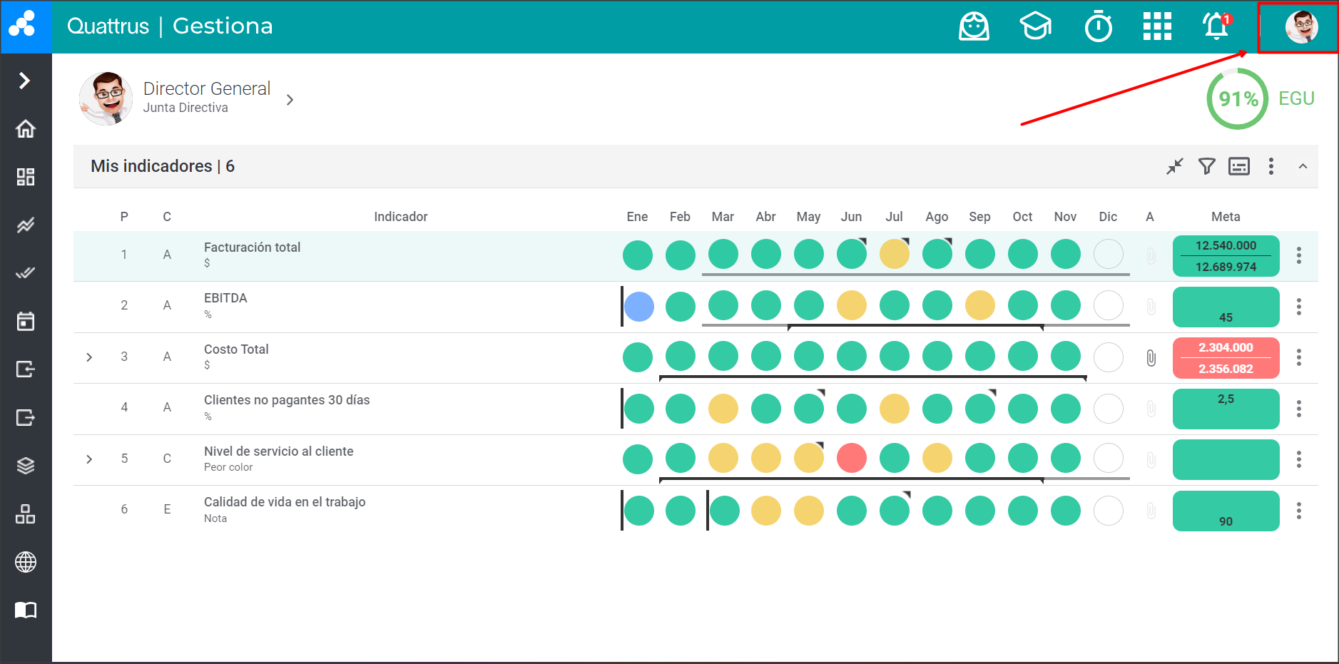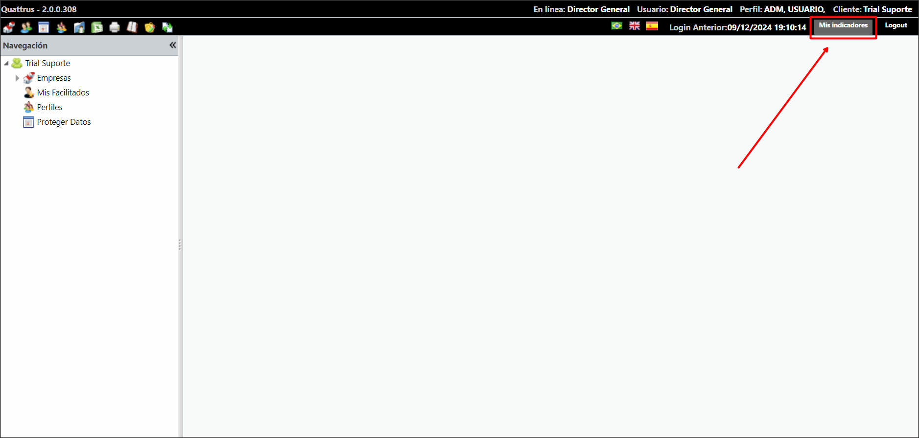 Para volver a su propio panel, debe hacer clic en el botón “Mis Indicadores“, como se indica en la imagen a continuación: