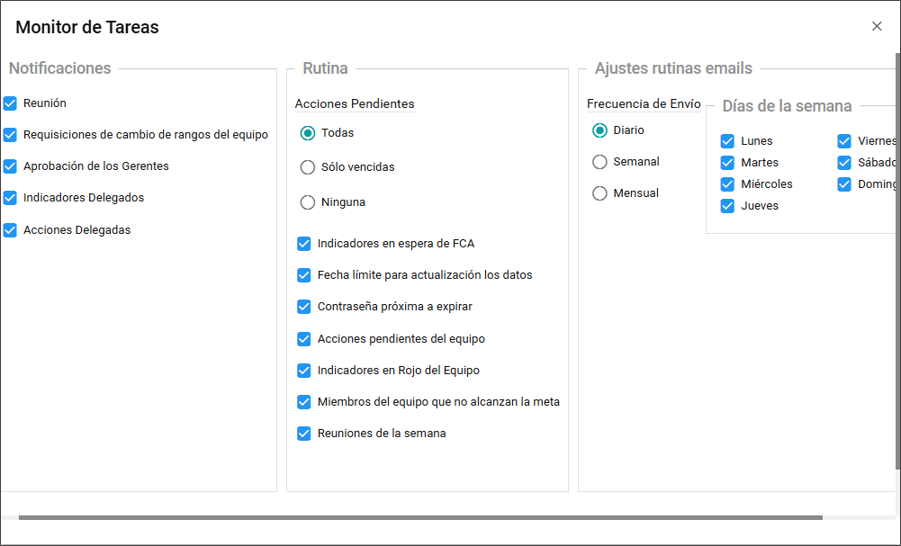 La segunda opción es Rutina.Aquí seleccionarás qué opciones deseas recibir en un informe consolidado por correo electrónico: