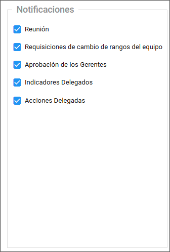 La primera opción es Notificaciones.Aquí podrás seleccionar qué eventos enumerados a continuación deseas recibir notificaciones en tu correo electrónico: