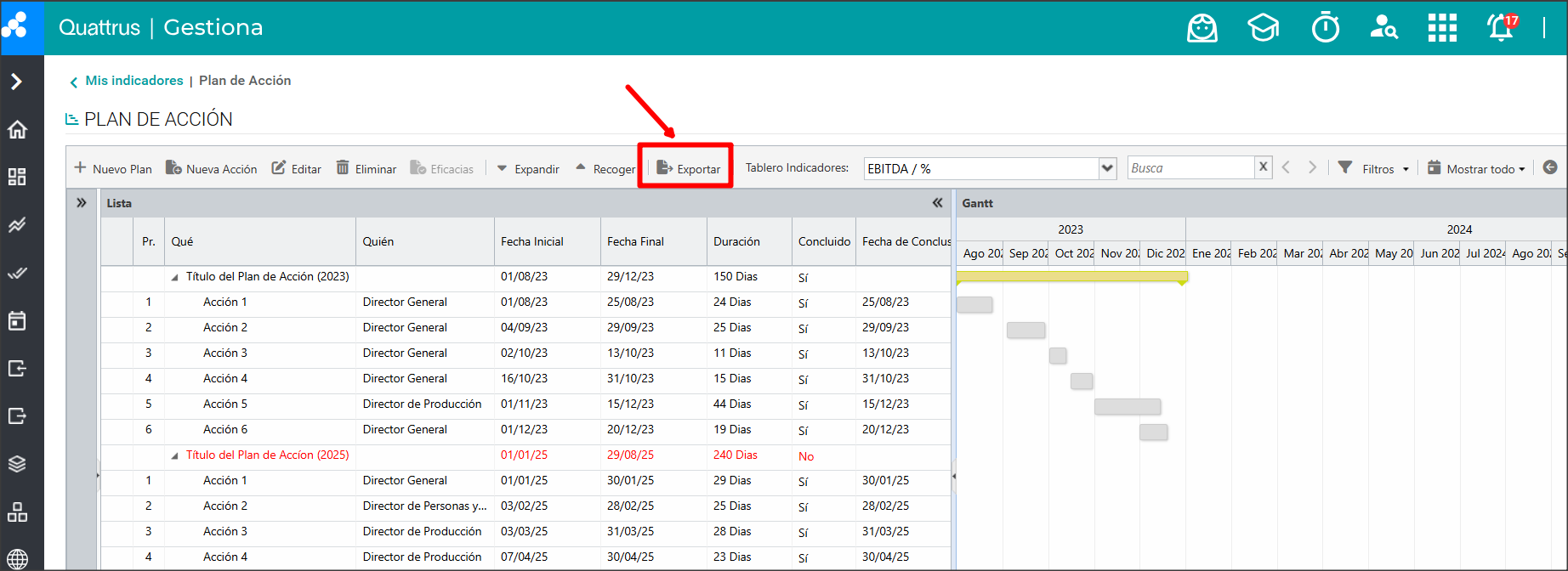 Podrás exportar tu Plan de Acción, haz clic en Exportar.