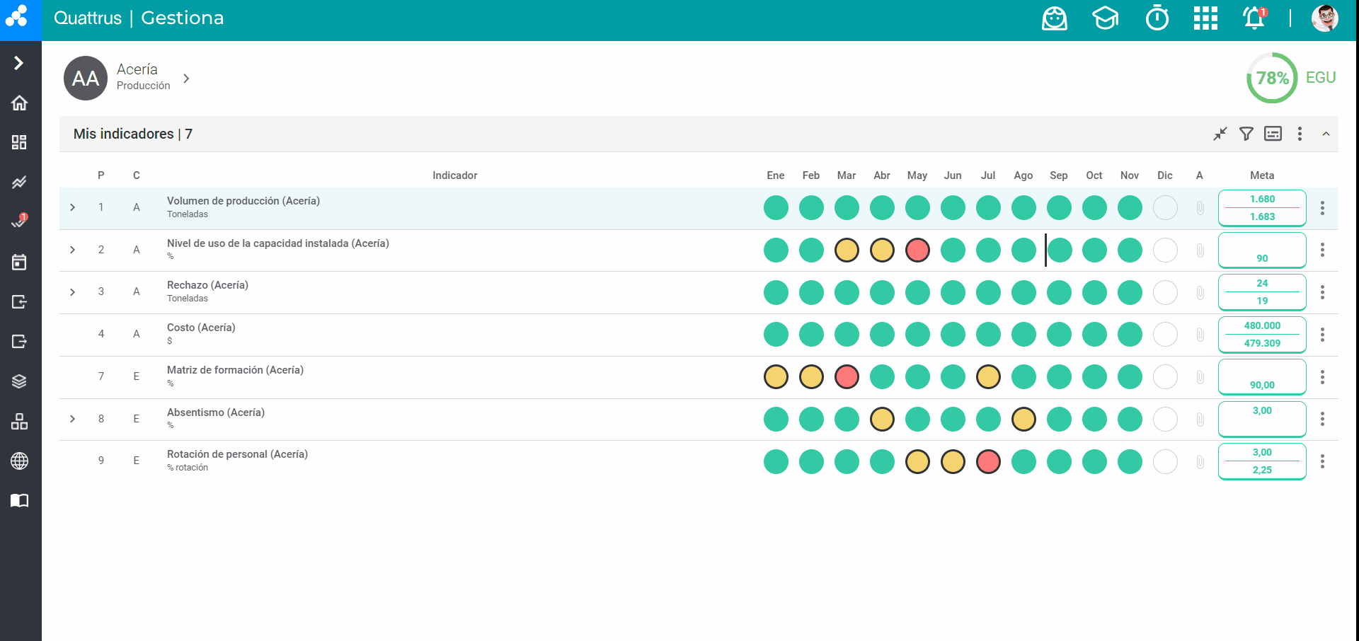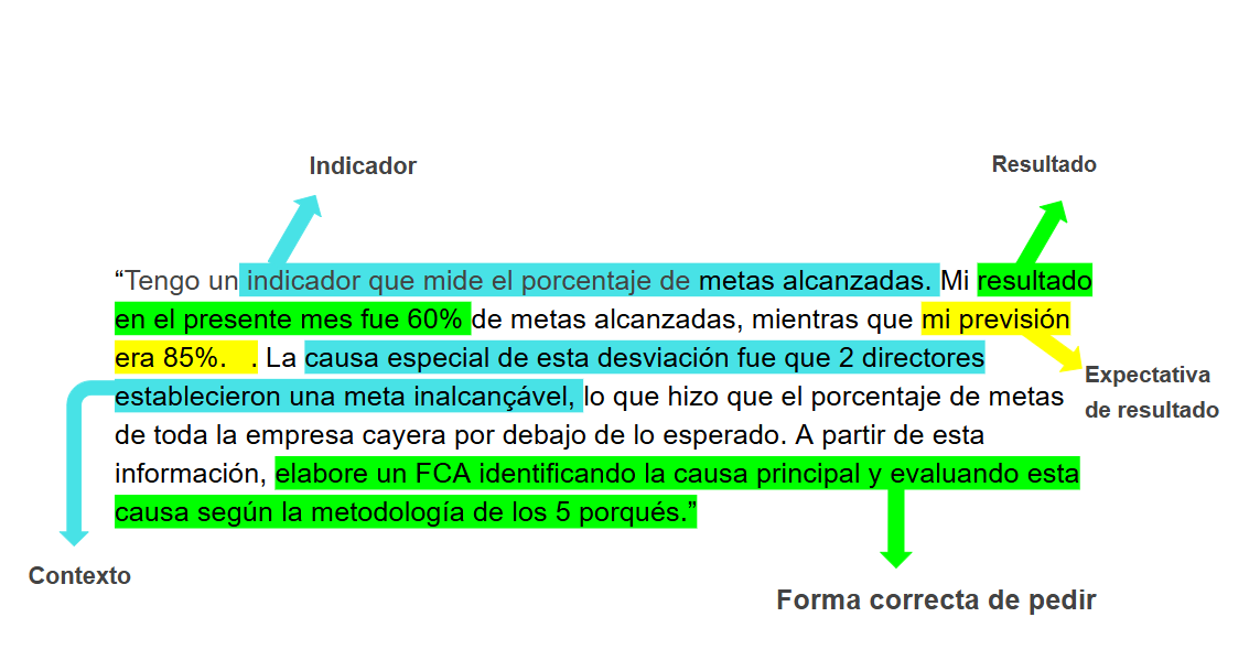 Imagina que tienes un indicador que mide el porcentaje de metas alcanzadas. El resultado del mes fue del 60%, pero la previsión era del 85%. Identificaste que la causa de la desviación fue que dos directores establecieron una meta inalcanzable, afectando el porcentaje general.