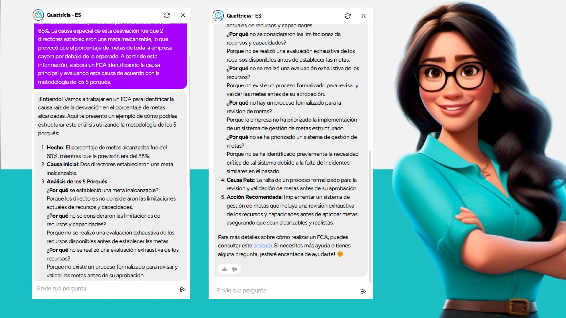 ¡Ahí es donde Quattrícia se destaca! Mucho más que responder preguntas básicas sobre qué es un FCA o cómo completarlo, puede actuar como tu aliada en el análisis y la revisión, garantizando que tu FCA esté bien estructurado y proporcionando ideas para mejorar la toma de decisiones.