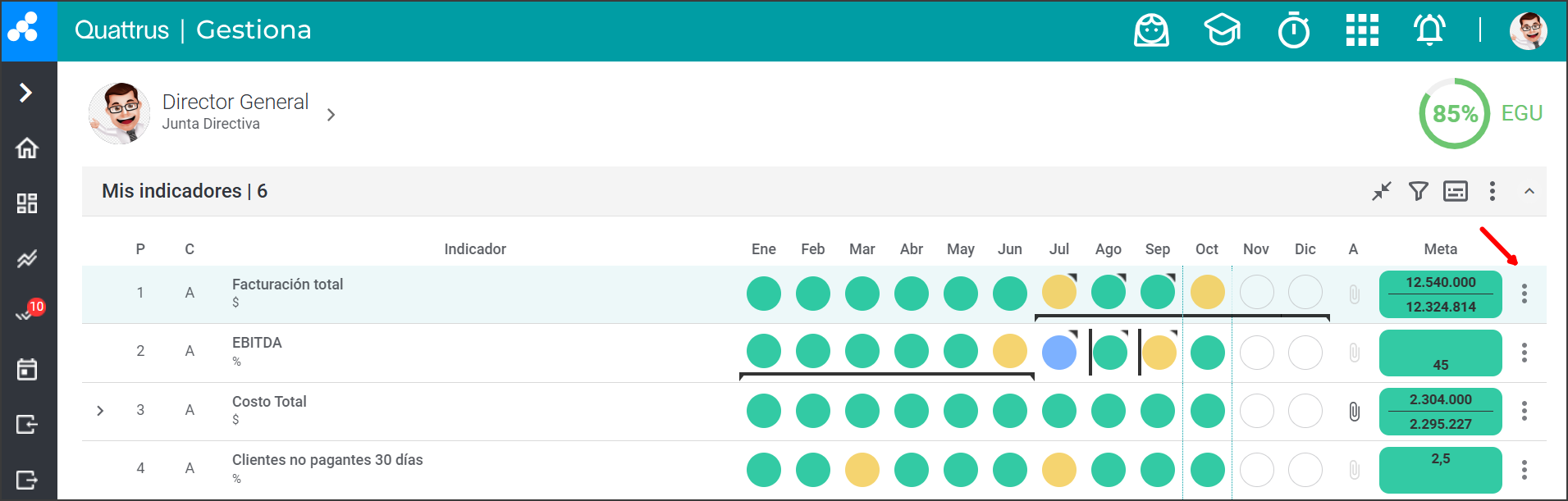 Haga clic en el botón de 3 puntos ubicado al lado de la meta del Indicador.