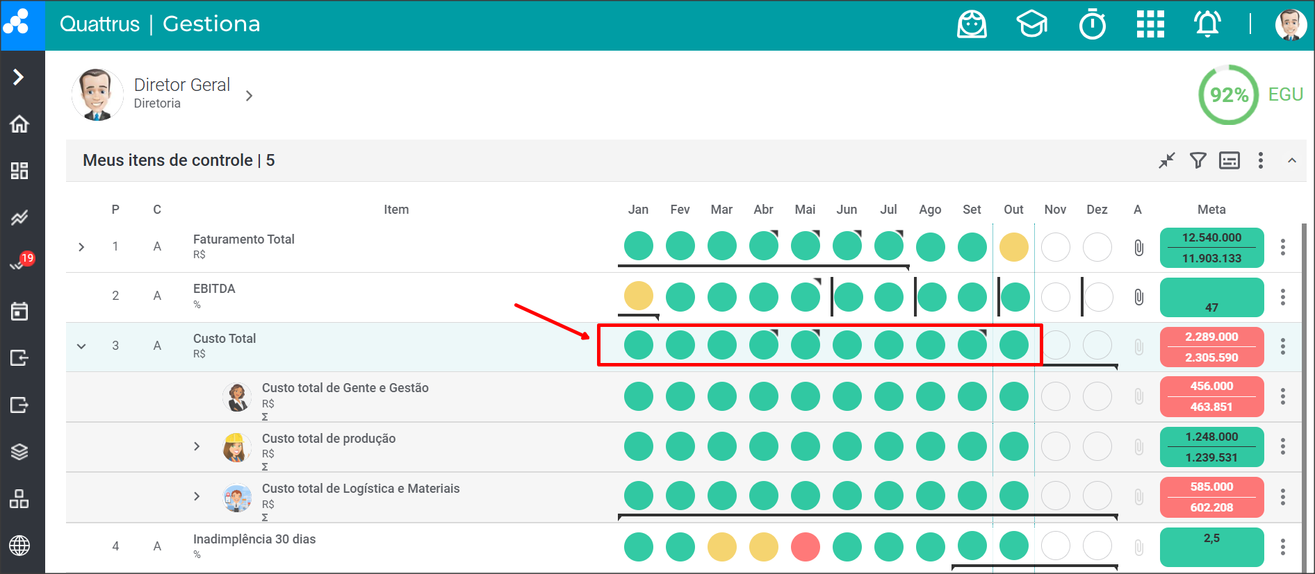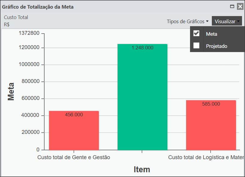 O sistema abrirá um gráfico que possui a meta do mês de todos os itens de controle que totalizam o seu Item.