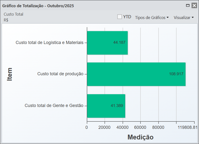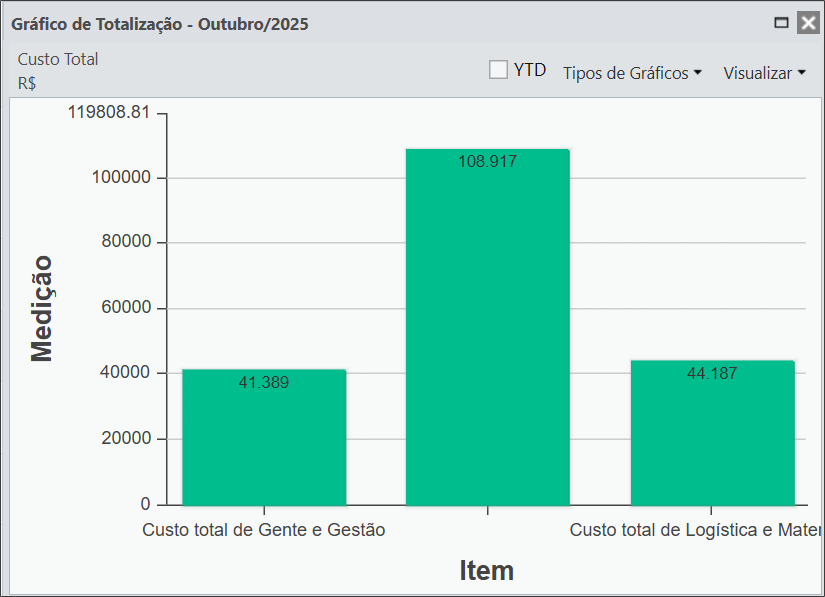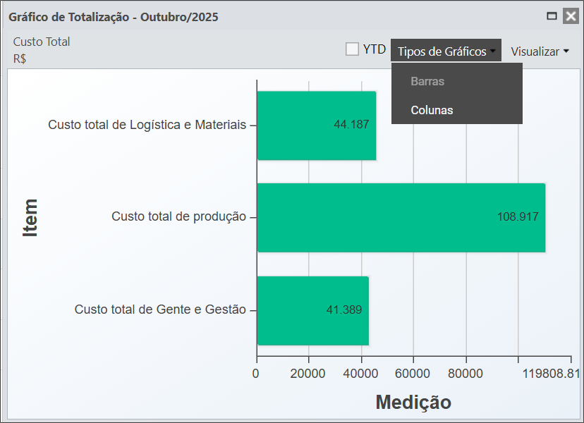 Caso queira exibir os valores desde o ínicio do período do item até o mês selecionado, basta marcar a caixa YTD e o gráfico exibirá os valores até então: