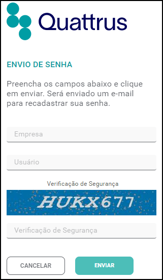 Preencha os campos Empresa e Usuário e, em seguida, preencha o campo Verificação de Segurança.