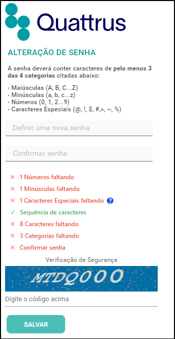 Após definir sua nova senha, digite a Verificação de Segurança e clique em Salvar.