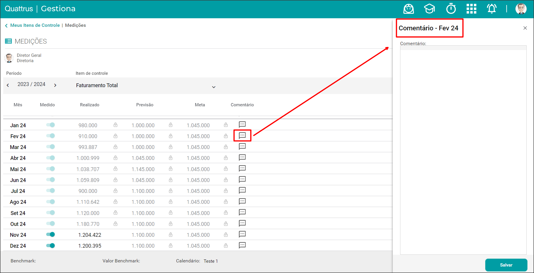 Você poderá inserir comentários nos meses, como indicado pela seta.